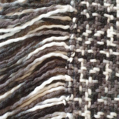 Triangle sjal/tørklæde i acryl/uld kvalitet og med flot knap i træ.