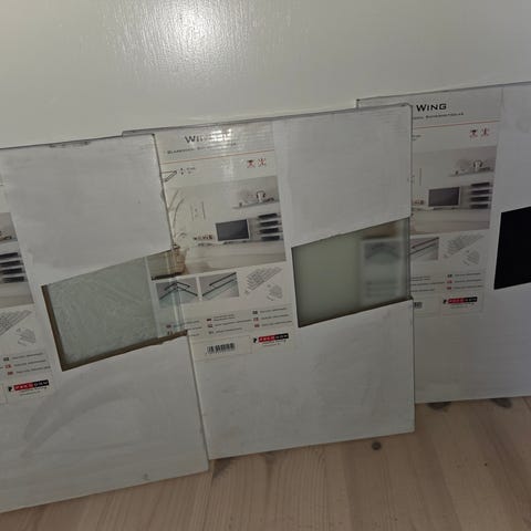 Glasplade med hvid bagside special lavet hos glarmester til at lægge ovenpå 2 skabe som vi ikke længere har.
