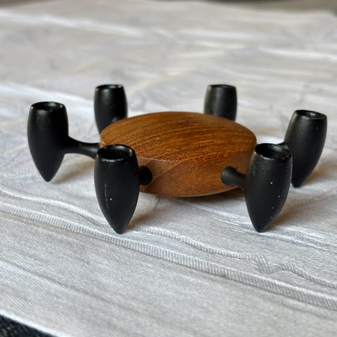 Teak og metal.