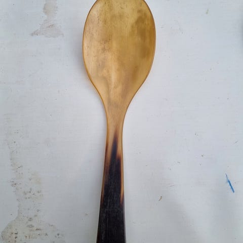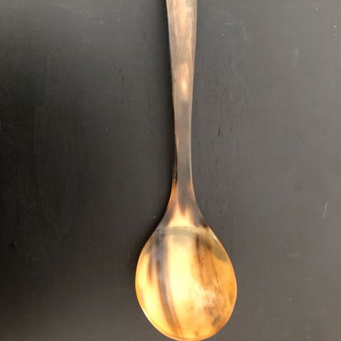 Bestik, Kunsthåndværk salatske i horn, Kunsthåndværk salatske i horn m smukke udskårne detaljer