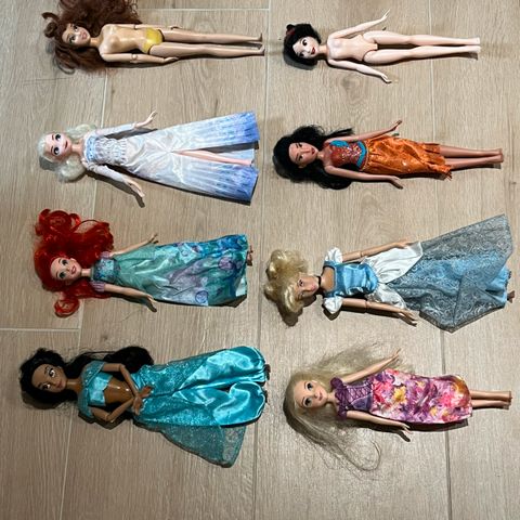 Barbie, 4 x Disney prinsesser, Snehvide, Askepot, tornerose & Bell