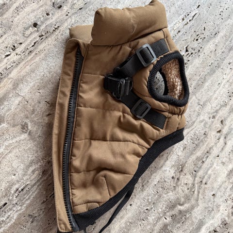 “Den Saint-Malo coat with harness er den perfekte jakke til din firbenede ven. Denne jakke er designet med et integreret selepolyester, der gør det nemt at fastgøre snoren uden at skulle bruge en separat sele. Dette gør det ikke kun mere praktisk for dig, men også mere behageligt for din hund. Jakken er lavet af holdbart polyester, der sikrer, at den kan modstå slid og holde din hund varm og tør i al slags vejr. Den er også udstyret med et blødt fleecefor og polstring, der giver ekstra komfort og varme til din hund. Med en lynlås på forsiden er det nemt at tage jakken af og på din hund. Du behøver ikke at bekymre dig om at skulle trække den over hovedet eller binde snore. Jakken er også udstyret med justerbare stropper, der sikrer en perfekt pasform til din hund. Fordele ved denne jakke inkluderer dens praktiske integrerede selepolyester, der gør det nemt at gå tur med din hund uden at skulle bruge en separat sele. Den bløde fleecefor og polstring sikrer, at din hund er varm og komfortabel, selv på kolde dage. Den holdbare polyester sikrer, at jakken kan modstå slid og holde i lang tid. Og med lynlåsen på forsiden er det nemt at tage jakken af og på din hund. Denne Saint-Malo coat with harness er den ideelle jakke til din hund. Den kombinerer stil, komfort og funktionalitet og vil holde din hund varm og beskyttet i enhver situation”.