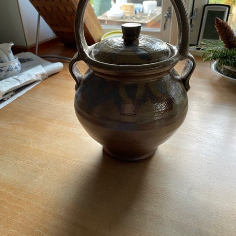 Kande og Barselspotte, Ler Keramik, Lerkande - 30cm høj. Barselspotte - 19cm høj.Kan sendes godt indpakket.