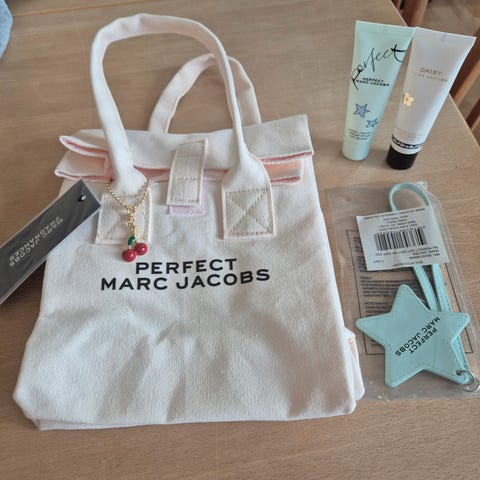 Smykkeskrin, Marc Jacobs, Lille fin box i imiteret hvidt læder fra Marc Jacobs parfume. Lukkes med lynlås.