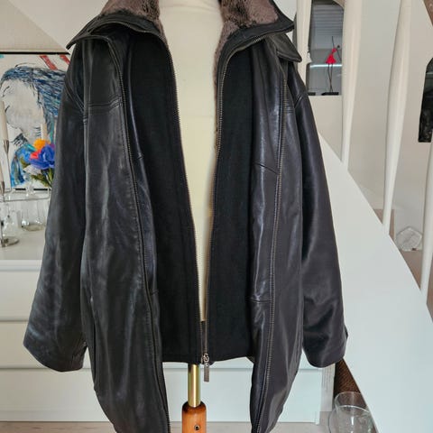 Læderjakke, str. M, JACK ASHORE, Sort , Læder, God men brugt, Læder jakke