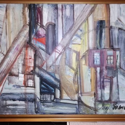 Akrylmaleri, Aage Strand, motiv: Landskab, stil: Modernisme, b: 110 h: 79, Akrylmaleri af Aage Strand ( 1910 -1975 ) maler