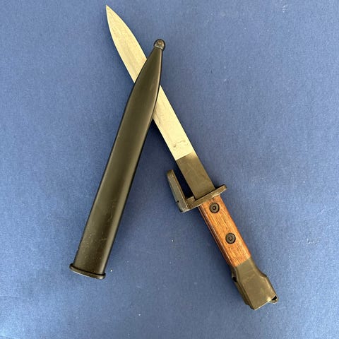 Militær, RDAK bomb practice m12 FFV. Længde 60 cm og diam ca 12 cm, med ophæng til fly i det danske luftvåben. Periode antagelig 1950-1960. Dette er en øvelsesgenstand og består udelukkende af metal. Den er ikke-og har aldrig været-armeret på nogen måde. (Inert practice objekt). Prisidé, modtagelig for bud.