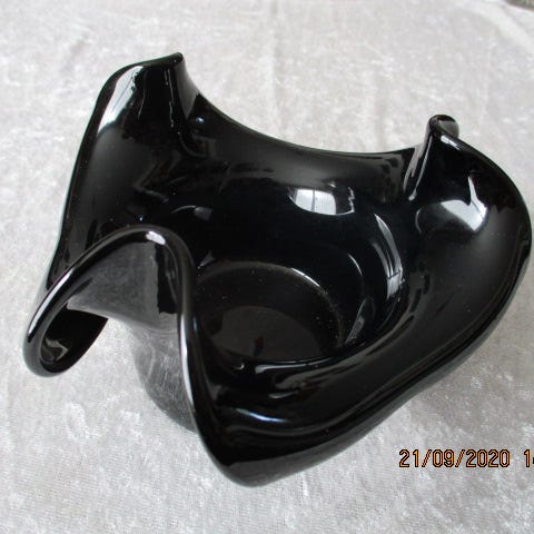 Tungsag på 1285 g. H:9,5. Udvendig Ø: 11 cm. Har en indvendig revne glasset og et par småridser men generelt i pæn stand. Signeret Holmegaard PL. X
