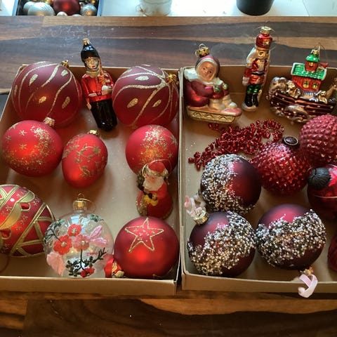 Glaskugler . Klokke . Pins . Broche, Retro julepynt . Glas juletræspynt . Nisse .