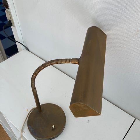 Skrivebordslampe, Lyfa, Vintage Lyfa teak, messing og metal lampe