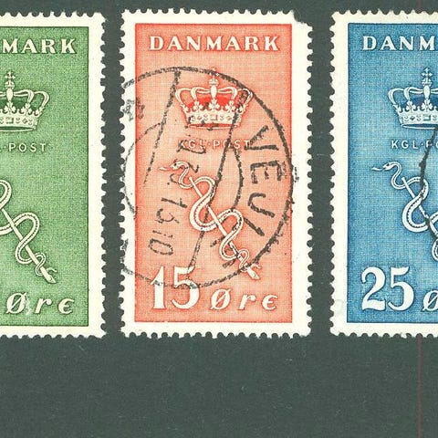 Danmark, ustemplet, Kræftmærker med tydelige papirfolder, Planche med 7 mærker AFA nr. 178 -180, ustemplede parstykker samt enkeltmærke AFA 179 stemplet. Alle med tydelige papirfolder.