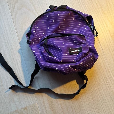 Børnerygsæk, Eastpak, b: 25 l: 13 h: 36, Eastpak minirygsæk, har en forlomme der også lukkes med lynlås. Den har polstrede stropper der kan reguleres den har desuden en strop, der gør den nem at bære i hånden.