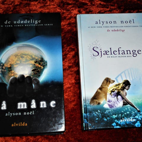 Blå måne 2 & Skyggeland 3, Alyson Noël, genre: ungdom, Forlag: Alvilda - Udgivet år: 2010 - Antal bind: 2 - Antal sider: 347+382 - Indbinding: Hardback - Sprog: Dansk - Tilstand: Fremstår i pæn stand