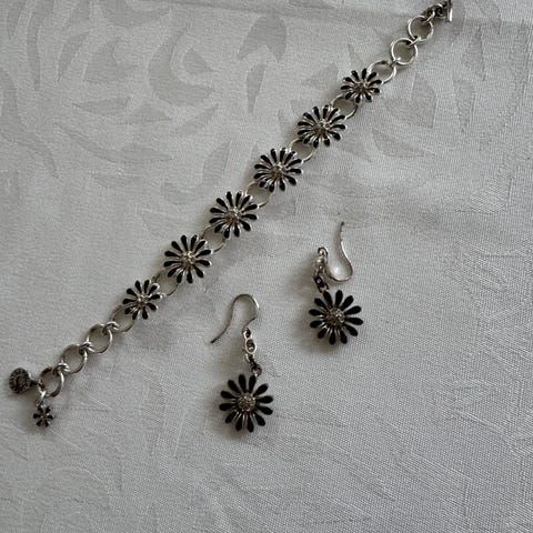 Smykkesæt, forsølvet, Pilgrim, Sød halskæde, broche, øreringe i lyserøde farver