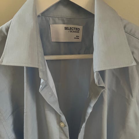 Andet, Expensue, str. M, Blå og hvid, Bomuld, Næsten som ny, Sælger flot kort ærmet skjorte i hvid og blå i str. M i bomuld. Meget lidt brugt, hvis min søn har brugt den.