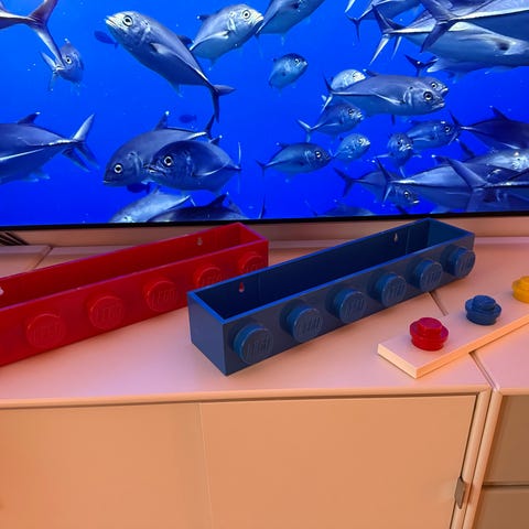 Knage, Lego storage, Fin knagerække fra Lego storage med lyserøde/lilla knopper
