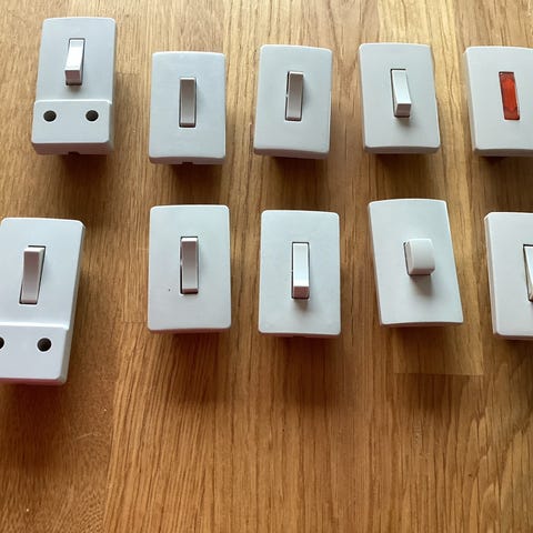 ....for at se mine andre annoncer med gamle vintage / retro / antikke stikkontakter, afbrydere, rammer, stik, dåser, osv., hvis du skal i gang med at renovere dit hus, din lejlighed, eller lave skur, værksted, hobbyrum, eller måske mancave...!