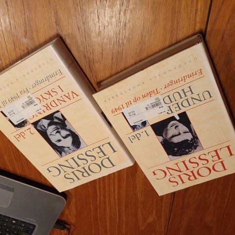 Vandring i skygge , Doris lessing, genre: roman, Vandring i skygge af Doris lessing, softcover 2 bind. År: 1998. Forlag: Gyldendal. 384 sider + 430 sider. Isbn: 9788700203969
