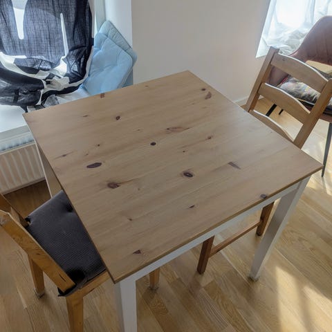 Køkkenbord, b: 78 l: 118, Køkkenbord med 4 stole. Kun brugt få gange. Nypris 2198 kr.