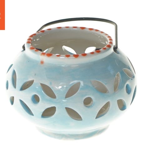 Andet, Blå Kant lysestage, Fin stand Dia 14vm
