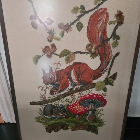 Skygge billede - broderi , med ramme, Skygge billede broderi