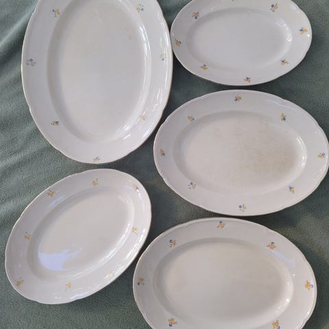 Porcelæn, 2 ovale fade, Aluminium. Anne Sofie, 2 ovale fade, Aluminium. Anne Sofie.