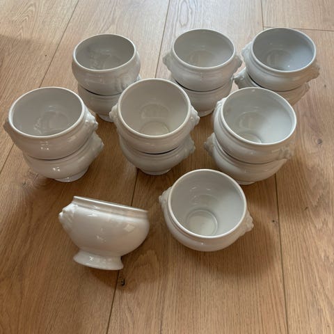 Keramik, Skåle, GALZONE, 6 store og 12 mindre skåle. Store måler ca. 40x15 cm. Mindre måler ca. 25x10 cm