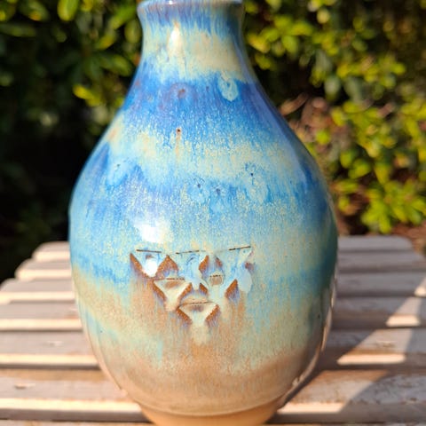 Stentøj, Vase, Michael Andersen, En lækker lille stentøjs vase fra Michael Andersen. Den har 3 forskellige motiver med inspiration fra Bornholm selvfølgelig..