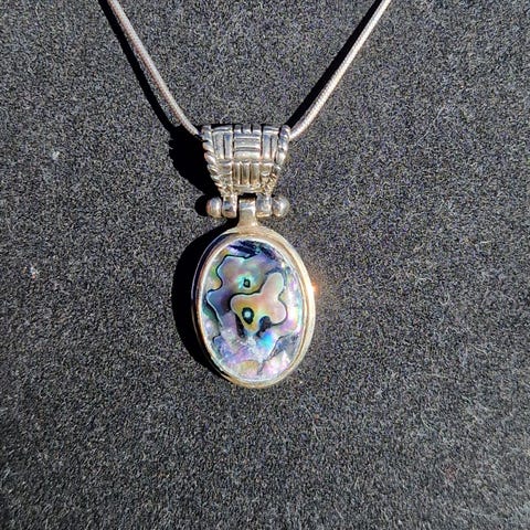 Vedhæng, sølv, 925 NC, Sølvsmeden. Vedhæng i sterling sølv stemplet 925 med vidunderlig abeloneskal perlemor formet som en flyvende sølvsmed. Arvet. 3x2 cm