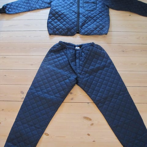 Termotøj, Karl's Workwear, str. XXXL, Mørkeblå, Næsten som ny, Fin termodragt med lynlås i benene, aftagelig hætte og reflekser på ærmer og ben.