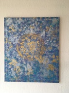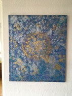 Akrylmaleri, Ukendt , motiv: Abstrakt, stil: Ekspressionisme, b: 50 h: 70, Smuk maleri i blå nuancer med elementer af guld og sølv.