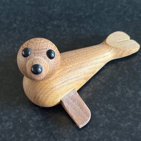 Sæl, Spring Copenhagen, Den sødeste sælfigur af træ. Helt ny og stadig i æske.