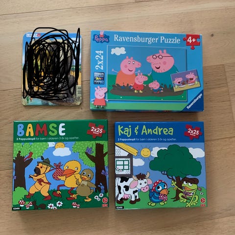 Larsen 1-10, Puslespil, puslespil, 2 fine børnepuslespil til barnet fra 2-5 år. Det ene er et Larsen 1-10 (10 brikker) og det andet er med Gurli Gris (40 brikker). Begge i meget fin stand.