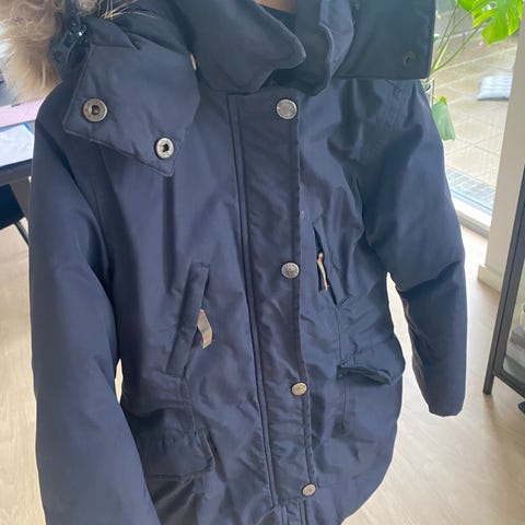Vinterjakke, Vinterjakke , Ver de terre, str. 104, Sødeste pige vinterjakke str. 104 i en flot mørkeblå 104. Meget velholdt. Kommer fra røg og parfumefrit hjem.