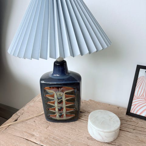 Søgeord; dansk design, retro, Bornholm, blå glasur, danish designer.