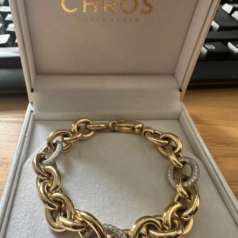 Armbånd, forgyldt, Swarovski krystal sten sat i 18 karat forgyldt metal