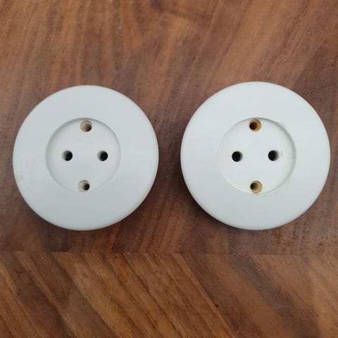 Vi har 4 stk. brugte NES lampeudtag til fatning S14D i hvid til indbygning.