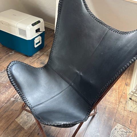 Læderlænestol, læder, Flagermusstol, Klassisk stol med et flagermuslignende design.
