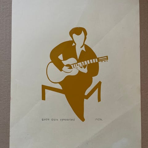 Tegning i ramme, Vi.. Steen Sørensen, motiv: Sigfred Pedersen på Bovbjerg