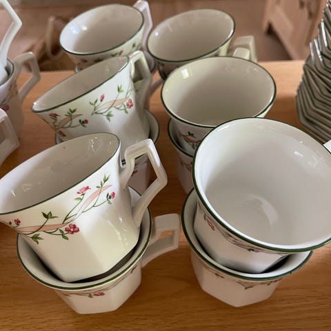 2 par Tekopper m/underkop og Kagetallerken, pr. sæt 149,-///SOLGT