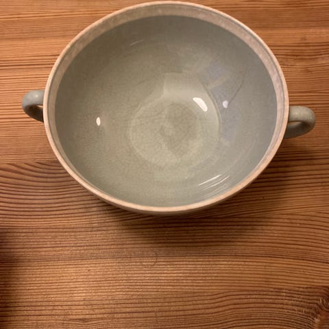 1 Lysestage som ovenfor med lille revne øverst i glasuren 75,-.