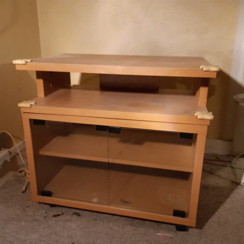 Tv bord, Rustfri stål vangerne (2 stk.), som kan bruges til f.eks. at holde en vask eller en ekstra hylde.