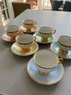 Porcelæn, Mokka kopper, gamle, Kjøbenhavns porcelæns maleri KPM, Fine gamle mokka kopper. Den gule har en lille rift i porcelænet, og den grønne underkop en lille flænge. Sælges samlet for 500 kr