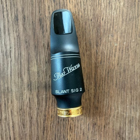 Mundstykke, Tenor BARI WT II 7*, BARIs bud på klassisk Otto Link til tenorsax, har ikke original ligatur men Francois Louis (der efter min mening er bedre), ser om jeg har en hætte også. Købt fra nyt for mange siden hos Aage Skou i Aarhus, i den originale træ æske. Lyder godt, men Otto Link er ikke mig! Altid med bideplade, ingen ridser, grundig rengjort. Super kvalitet! Fra BARIs hjemmeside; “The Bari WTII saxophone mouthpiece is has a unique facing that was replicated from the original otto link. Designed with a medium-large chamber, the Bari WTII saxophone mouthpiece produces a dark and edgy tone. The Bari WTII saxophone mouthpiece is made from hand-polished brass, plated in 18K gold, that will provide an amazing sound and projection.”