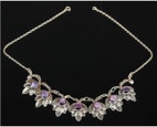Halskæde, sølv, Super smuk halskæde i sterlingsølv monteret med syv led iform af blade monteret med lilla glassten l. 42 cm