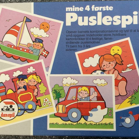 Mine 4 første puslespil, Puslespil, puslespil, 4små puslespil til børn fra 2 år. Der er mellem 9-12 brikker. De er i fin stand, dog mangler der lidt på en brik.