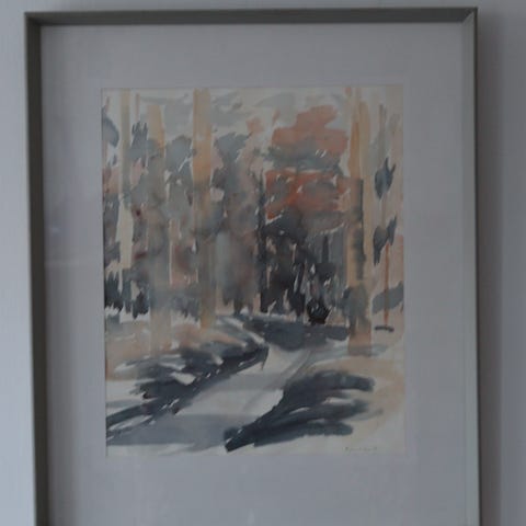 Akvarel, T.Trier, motiv: Dyr