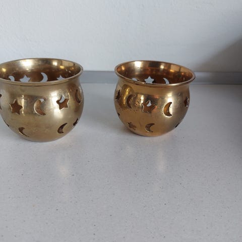 Messing fyrfadstager, 2 stk samlet. Ø7 cm. Ca. 6,5 cm høj