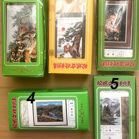 Broderi, Japansk broderi, Ramme, motiver og en kasse med tråd af forskellige farver.