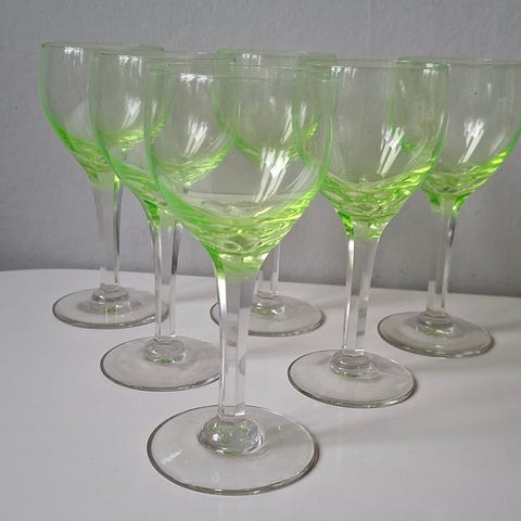 Glas, Hvidvinsglas 10 stk Aase/Greta Garbo + 2 stk. Aase, Holmegaard, 10 stk. Aase/Greta Garbo og 2 stk. Aase hvidvinsglas henholdsvis grønne og de 2 er noget lysere. Højde 11,6 cm og diameter 6,5 cm. Alle 12 glas uden skår sælges samlet.